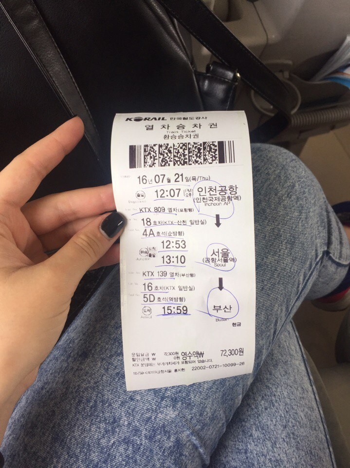Если у вас не было возможности приобрести билет заранее и мест в поезде больше нет – не отчаивайтесь. Скорее всего, вам предложат билет с пересадкой: стоит он столько же (около 70 долларов – 70 000 KRW – за взрослый билет в эконом-класс), но на Seoul Station вам нужно будет пересесть в другой такой же поезд, который придет в ближайшие 10–20 минут (вся информация, точная минуту в минуту, будет прописана у вас в билете).