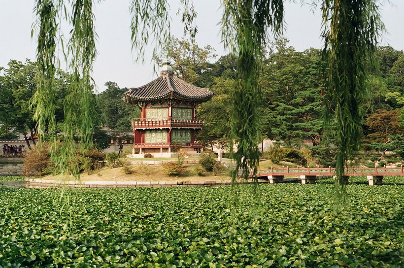 - Кёнбоккун. Крупнейший из 5-ти дворцов Сеула династии Чосон, представляющий собой музей под открытым небом. Кёнбоккун был построен в 14-м веке, несколько раз перестраивался и реконструировался, будучи разрушенным в результате войн и японской оккупации. Одно из самых красивых мест в дворцовом комплексе – лотосовый пруд. Перед походом во дворец можно взять напрокат ханбоки (традиционная корейская одежда), чтобы сделать ещё более атмосферные фотографии. В Кёнбоккуне я была 3 раза: весной, летом и зимой. Больше всего мне понравилось летом, когда пруд заполняется листьями сотен лотосов.
