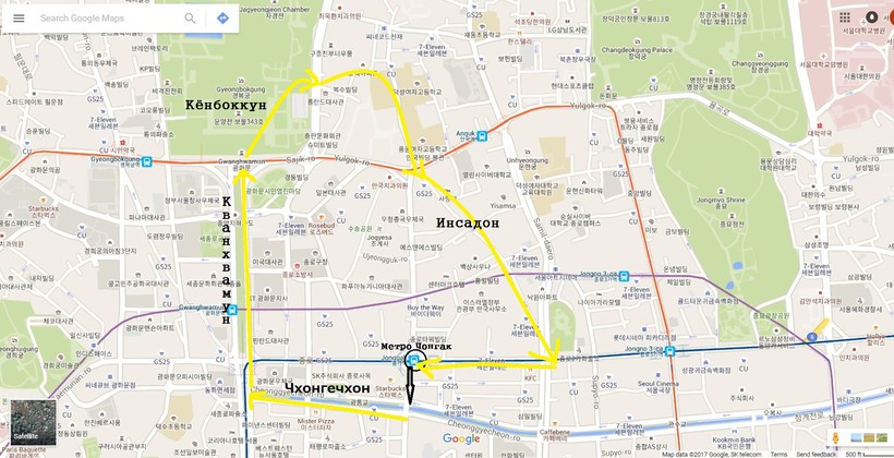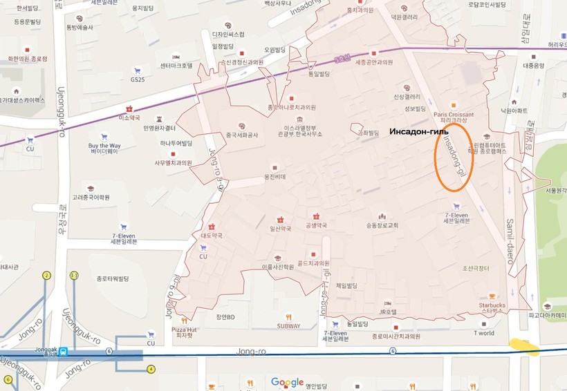 Это центр города, окружённый бетонными офисными зданиями. Плюс района в том, что основные достопримечательности вроде Кёнбоккуна, Инсадона и Чхонгечхона находятся близко. Минус: кроме достопримечательностей, посмотреть здесь особо не на что, но отсюда удобно добираться в любую точку города и цены на проживание здесь ниже, чем на Хондэ или Каннаме.