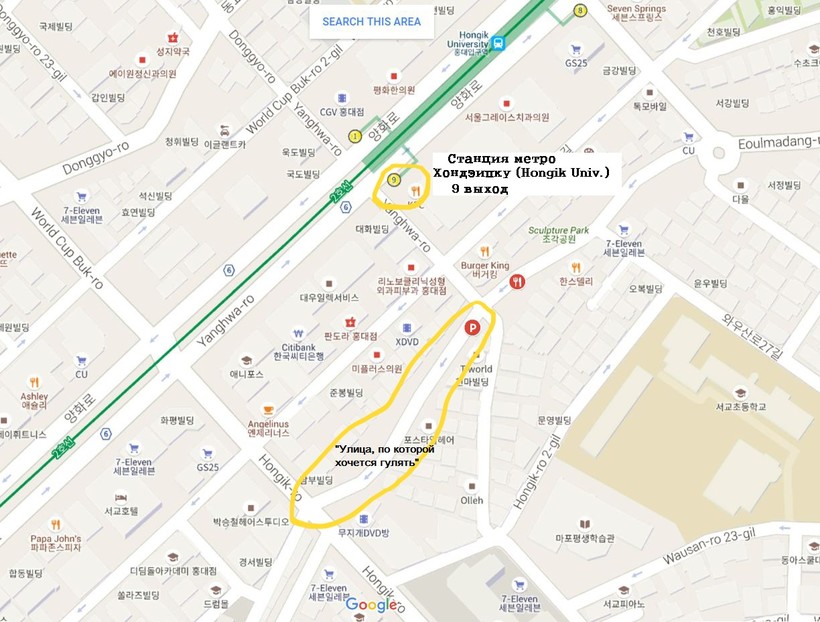 Я успела немного пожить и в самом сердце Хондэ, и в тихом районе рядом, недалеко от станции метро Хапчон. Останавливаться на Хондэ имеет смысл, если вы планируете большую часть своего времени проводить там, если нет, будет лучше выбрать район потише и подешевле.