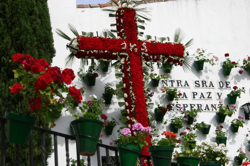 - Фестиваль Святого Креста (Cruces de Mayo) – знаменует приход мая в Гранаде и Кордобе. В эти дни площади, улицы, балконы украшаются цветочными композициями, повсюду можно увидеть увитые цветами кресты. Параллельно проводится популярный Конкурс Крестов (Concurso de Cruzes) на самое пышное убранство креста. Что только не используют местные жители для украшения: шали, платья, гирлянды, гвоздики, цветочные горшки и прочую домашнюю утварь. Мне Фестиваль Святого Креста нравится за свой весенний дух и невероятные цветочные запахи, которые окутывают все улицы!