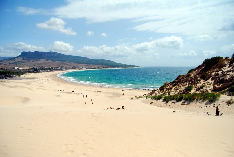 - Плайа де Болония (Playa de Bolonia), провинция Кадис, г. Тарифа – пляж находится на Атлантическом океане. Я его обожаю: лазурная вода, чистый мелкий белый песок, берег обступают дюны, запах сосен, приятные кафе со средиземноморской кухней, дыхание Африки. В сезон бывает довольно много людей. И еще хочу предупредить, что здесь порой дует очень сильный ветер и бывают серьезные волны. Так что для отдыха с детьми, может быть, это не самое удачное место. А в остальном пляж просто идеален. Вход бесплатный, инфраструктура и туристические активности (кроме двух небольших кафе) отсутствуют.