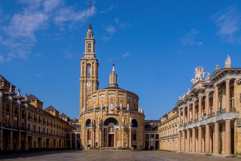 Рабочий университет Хихона был построен при Франко для детей шахтеров. Это невообразимо огромный комплекс зданий, над которым возвышается гигантская колокольня. На колокольню можно подняться на лифте, с нее открывается превосходная панорама города.