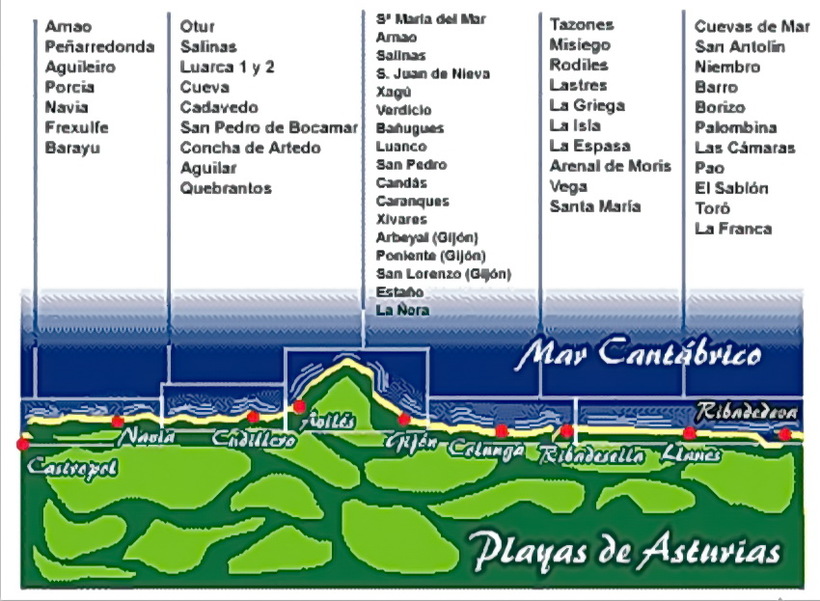 Также серферы высоко оценивают пляжи Tapia, Salinas, Xago, El Mongol, Playa Espana.