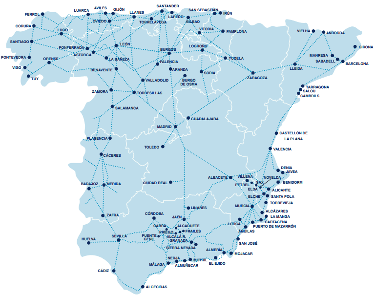 Из других городов Испании в Барселону можно попасть на автобусах компании ASLA, чья сеть охватывает практически всю страну. В этом можно убедиться, посмотрев на карту, где отмечены основные маршруты перевозчика.