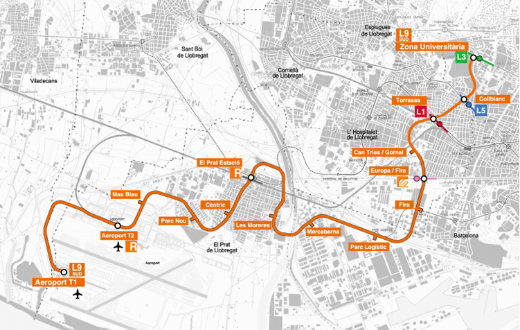 В начале 2016 года появилась ветка метро L9 Sud, соединяющая «Эль Прат» с центром города. Поезда на линии ходят раз в 7 минут, и для проезда для них вам придется приобрести специальный билет стоимостью 4,5 евро. Стандартный проездной на метро, к сожалению, не действует. Другим минусом данного варианта является то, что ехать до центра придется с пересадками. По времени данный вариант тоже не выигрывает у наземного транспорта. Все станции, входящие в новую ветку, можно посмотреть на карте.