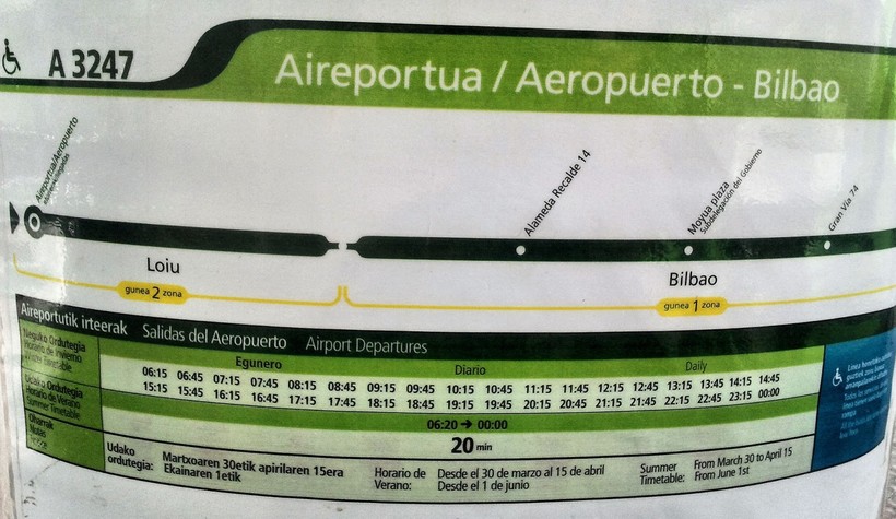- Бильбао (автовокзал) – Аэропорт: каждый 30 минут с 05.25 до 21.15 – в 25 и в 55 минут каждого часа.