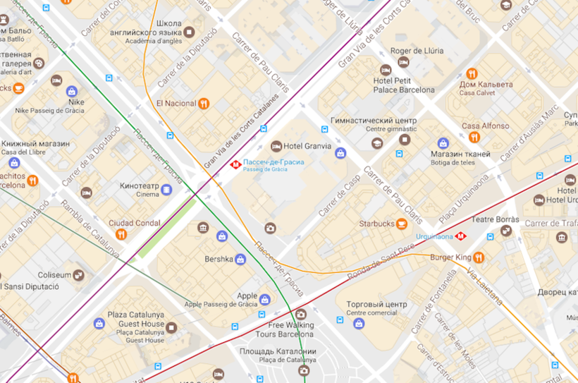 Ура! Вы в центре города. Главная улица как и в Барсе — площадь Каталонии (Plaça de Catalunya).