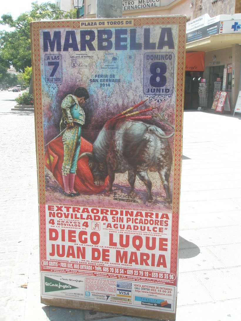 В Марбелье также есть арена для боя быков где проводится коррида, афиши с рекламой корриды можно увидеть прямо на улицах города.