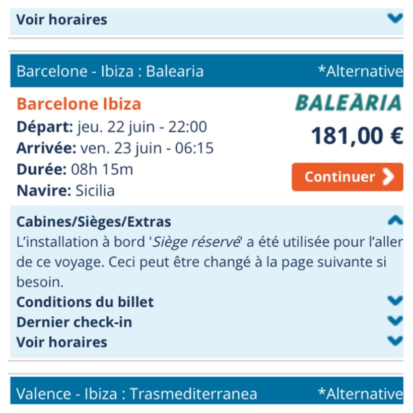 Как я уже упоминала ранее, ехать на пароме до Ибицы будет дешевле всего из Испании. Барселоны и Валенсии. Цены на паром в одну сторону — 62 EUR. Все это конечно относительно. Если поискать заранее на разных сайтах, можно и найти немного дешевле. Время в пути 5 часов и 10 минут.