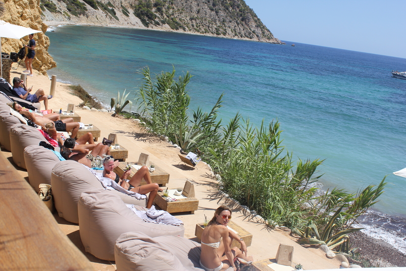 - Самый лучший и самый большой пляж Ибицы — PLAYA D'EN BOSSA. С многочисленными барами, чтобы устроить праздник на белом горячем песке. Вход там бесплатный, шезлонг стоит примерно 20 EUR + зонтик 15 EUR. Но подождите радоваться, проходимость на пляже в разгар сезона невероятно большая. Поэтому, попасться на хорошие места и свободные шезлонги — это большая редкость. Многие бары просто отказываются бронировать заранее. И отбор проходит в живой очереди, а у кого-то следующий свободный столик или шезлонг может оказаться свободным только через неделю и поверьте, я нисколько не преувеличиваю.