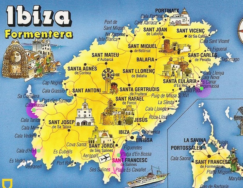 Остров Ибица, огромным не назовешь, однако и за два дня вам его изучить и раскрыть не удастся. Очень много красивых и знаменитых мест ожидает вас. Давайте посмотрим на карте и попробуем выделить самые известные.