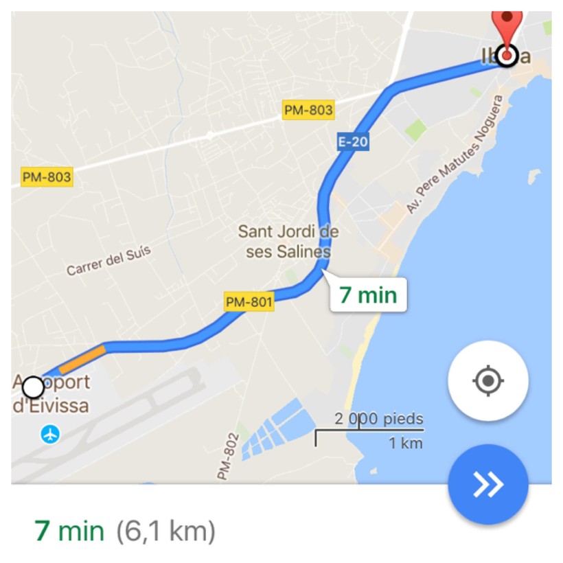 Аэропорт на Ибице один и находится очень близко от центра города. Примерное время в пути на такси 5-10 минут.
