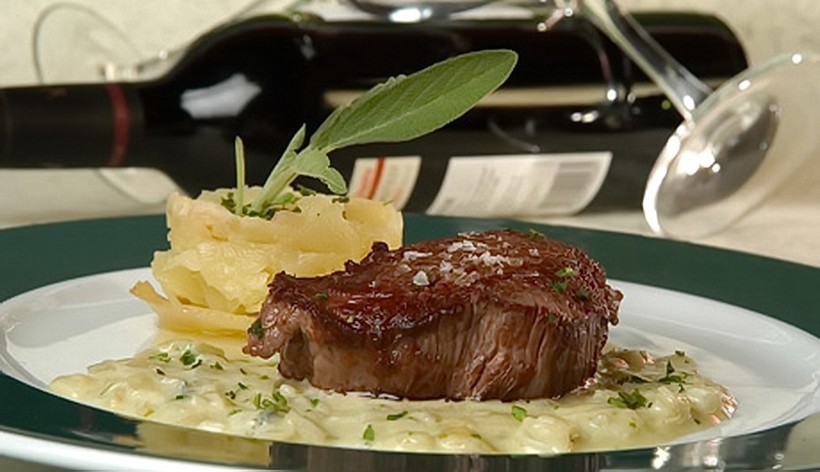 Solomillo al queso de Treviso. Говядина, точнее — филей, с бесподобным сыром Tresviso, который вызревает в горных пещерах рядом с одноименным городком.