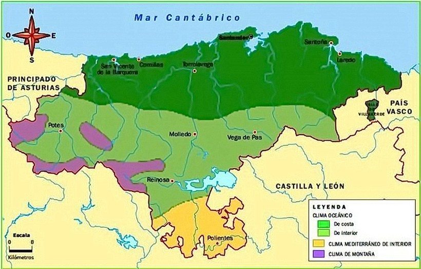 Кантабрия, несмотря на небольшую площадь, имеет несколько климатических зон с довольно серьезными различиями.