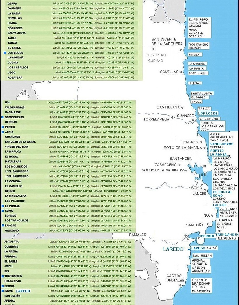 Береговая линия Кантабрии составляет 220 км, это необычайно красивое побережье с отличными пляжами на любой вкус, благоустроенными и дикими, для купальщиков и, конечно же, для серферов. Почти все пляжи, о которых я здесь рассказываю, имеют голубые флаги. Карту с расположением пляжей Кантабрии и их координатами можно скачать здесь.