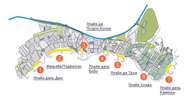- Плайя дель Дюк – чисто, спокойно, прилично в основном благодаря премиальному статусу района Дель Дьюки, окружен бутиками, виллами, роскошными отелями.