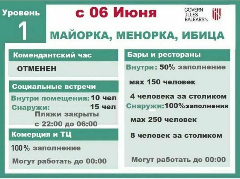 ВАЖНО. С 29 ноября 2021 г. в связи с увеличением числа заболеваний правительство Балеарских островов вводит обязательные COVID-паспорта для посещения общественных мест вместимостью более 50 человек.