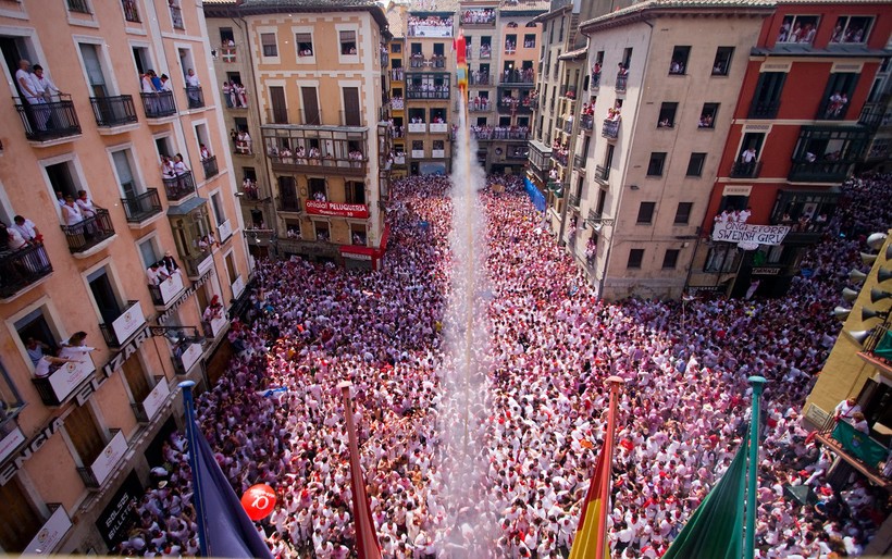 Праздник начинается с запуска ракеты, El Chupinazo, в полдень 6 июля с балкона ратуши Памплоны. На открытие Сан-Фермин собирается невероятное количество людей, гораздо большее, чем может вместить маленькая площадь, прямая телевизионная трансляция передается во многие страны мира.