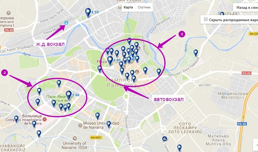 Выбирая расположение отеля, обратите внимание на близость к автовокзалу, если планируете частые поездки по Наварре.