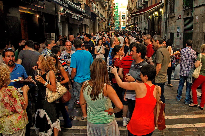 Средоточие таких заведений — это Plaza del Castillo, улицы Estafeta, Zapatería, San Antón, Calle Nueva и San Nicolás. Средняя цена тапас — 2-3,5 EUR. Обратите внимание, что очень часто тапас, которые выставлены на стойке, меню не ограничивается, а самые вкусные — те, что приготовят по вашему заказу. Обычно бары закрываются в 23:00-24:00, но всегда можно найти работающий и 2, и в 3 часа ночи.