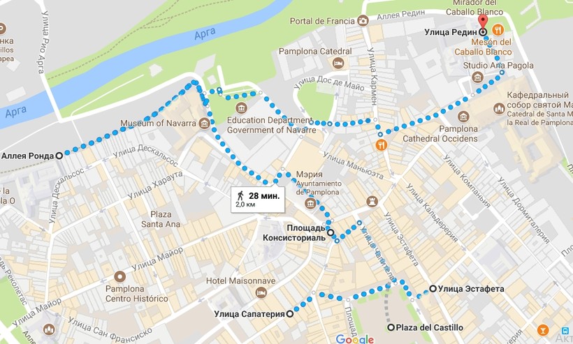 Из Бильбао в Памплону ходит автобус компании La Union, время в пути — 2 часа, стоимость — 15 EUR.