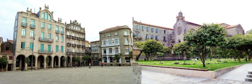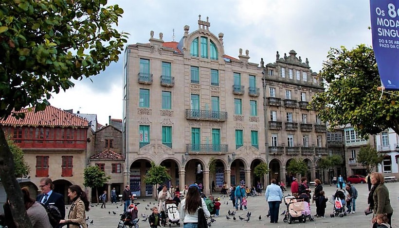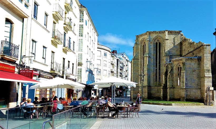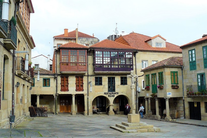 Площадь A Ferraría, где, наслаждаясь напитками в уличных кафе, можно обозревать старинные городские здания с высеченными из камня гербами местной знати, женский монастырь и прилегающий к нему сад.