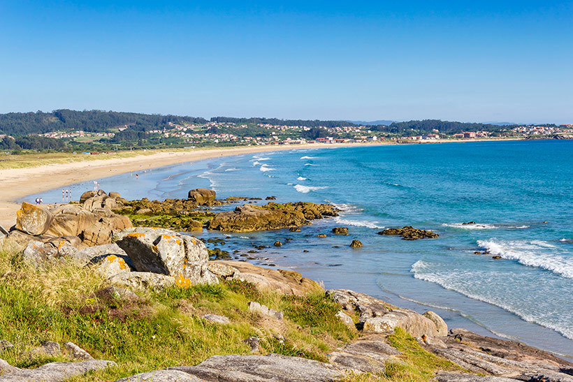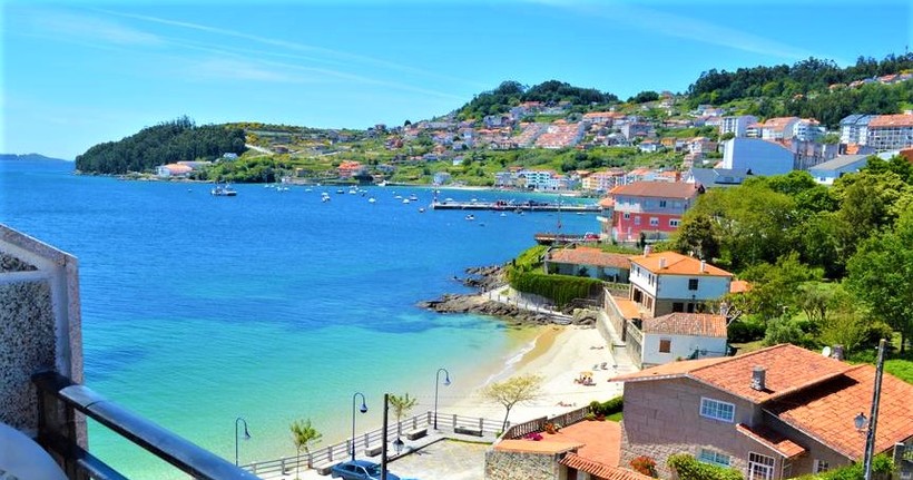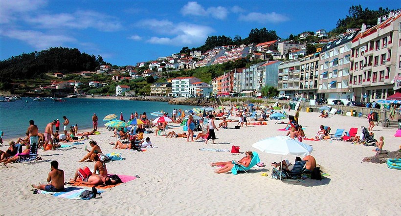 Covelo, пляж с мелким золотистым песком и хорошо защищен молом от волн и ветров с океана.