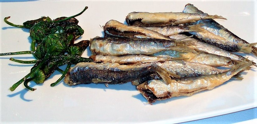 Первым блюдом, полюбившимся мне в Понтеведре стали жареные мелкие сардинки Xouvas. К ним рекомендую помимо картошки фри попросить перчики из Падрона.