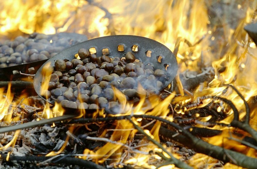 Главным блюдом на праздник всех святых во многих испанских регионах являются каштаны, жаренные на открытом огне.