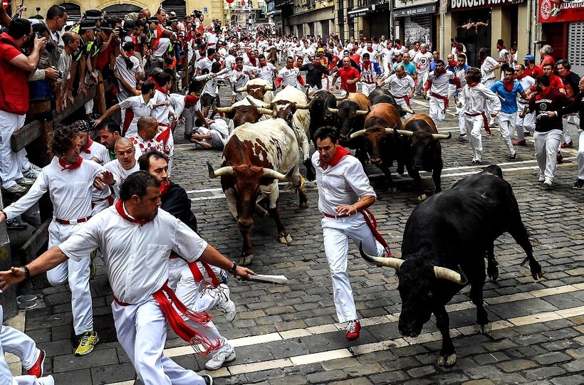 Региональная фиеста в Памплоне (столице Наварры) в честь святого покровителя города проводится уже 800 лет. Праздник, который отмечается 6 июля, перерос в недельный фестиваль, длящийся до 14 июля. Фестивальные события начинаются с энсьерро — пробега испанских мужчин перед 12 боевыми быками. Чтобы убежать от быков, которых гонят на стадион для корриды, требуется смелость и ловкость. Пробег редко заканчивается без травм смельчаков.