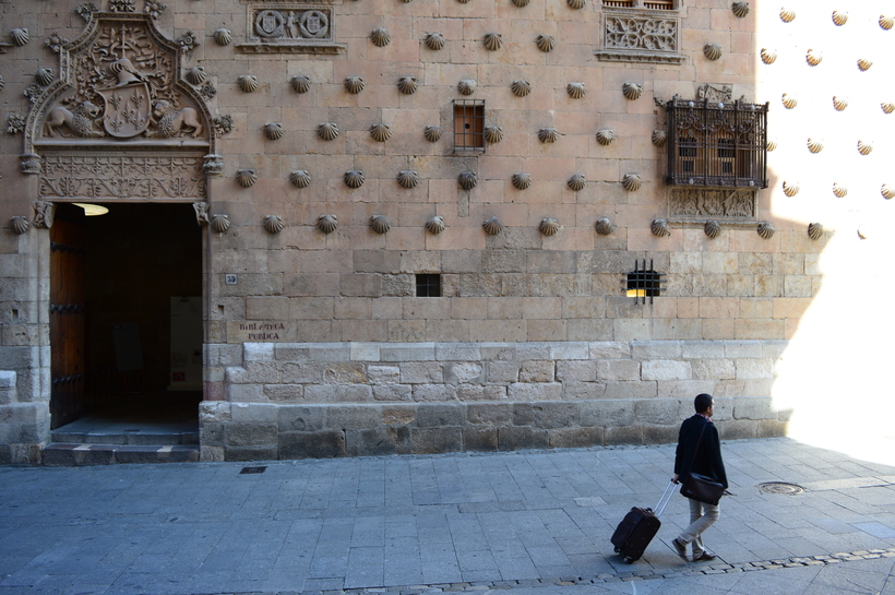 - 12.00 — Дом с ракушками. Напротив, здесь вы найдете публичную библиотеку, церковь La Clerecía и папский университет. Поднимитесь на башни церкви La Clerecía, откуда вам откроется великолепный панорамный вид на город. Здесь много кафешек, чтобы перекусить, поэтому можете остаться пообедать, но учтите, что здесь много студентов, и в обед обычно многолюдно.