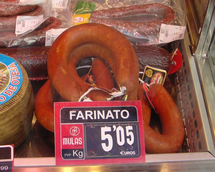 - Чорисо или «Эль фаринато» (El farinato) — копченая свиная колбаса. Ранее это считалось блюдо для бедных, так как на 45% колбаса состоит из хлебного мякиша, лука, свиного жира, чеснока, зернового аниса, виноградной водки и оливкового масла.