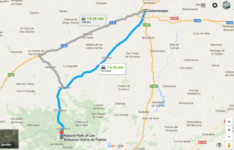 Как я и упоминал в окрестностях Саламанки (82 км), есть замечательное место для горнолыжного отдыха — Sierra de Béjar-La Covatilla.