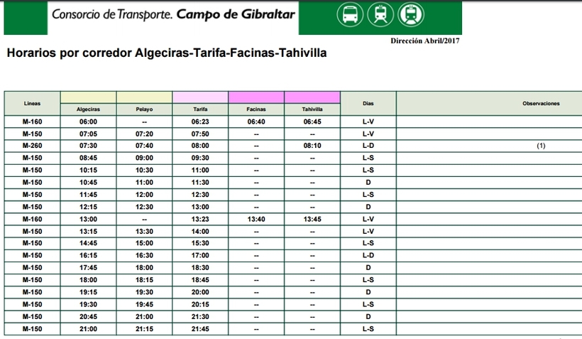 Кроме этого, из Альхесирас в Тарифу есть две линии местных автобусов, которые делают около 16 рейсов в день.