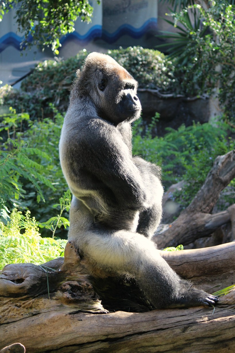 Вход в парк похож на вход в буддийский храм. Первым вы увидите большой вольер, в котором живут пять огромных горилл. Иногда они подходят к стеклу, дабы посмотреть на вас, однако к концу дня уж точно не интересуются людьми. Но уж если вы пересеклись взглядом, то становится немного страшно, т.к. они реально огромные, а взгляд временами очень человеческий.