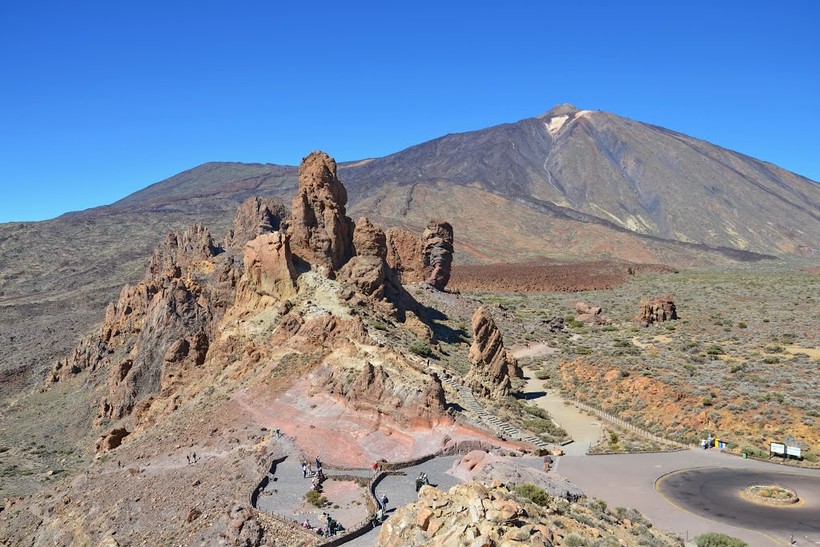 Тейде – не просто горная вершина, но и огромный национальный парк, раскинувшийся на склонах вулкана и у его подножия. На его территории мы провели почти целый день: сначала любовались видами на лавовую долину и бродили среди причудливых скал, а после поднялись на фуникулере на высоту 3555 метров и любовались видами сверху. От фуникулерной площадки в обе стороны идут пешие тропы, по которым можно обойти вершину или подняться к самому жерлу вулкана. Но для совершения восхождения необходимо заранее получить специальное разрешение, а также запастись необходимым снаряжением: всё же до высшей точки придется подняться еще на 163 метра (высота вулкана – 3718 метров).