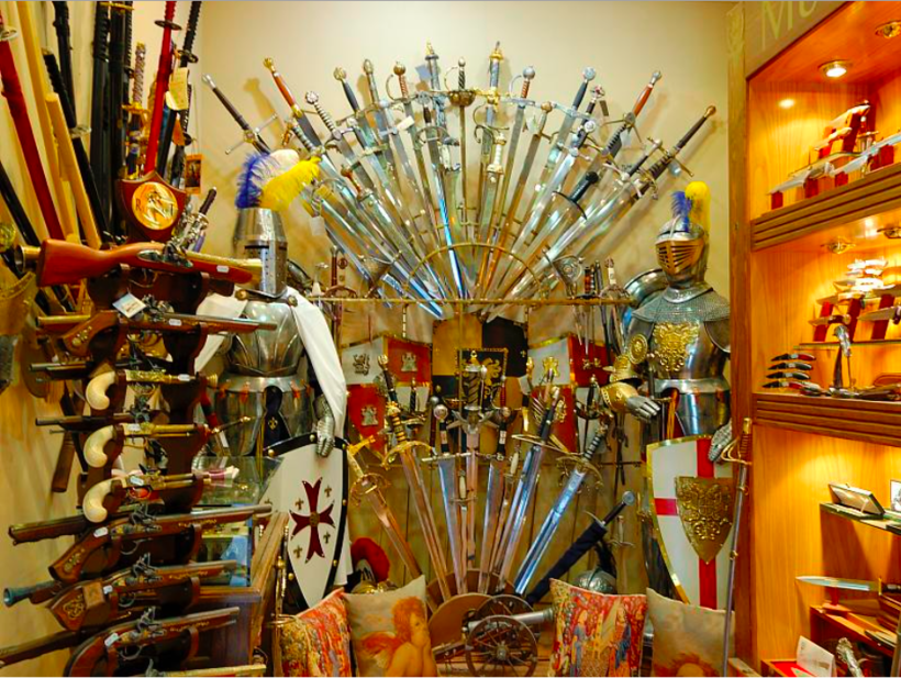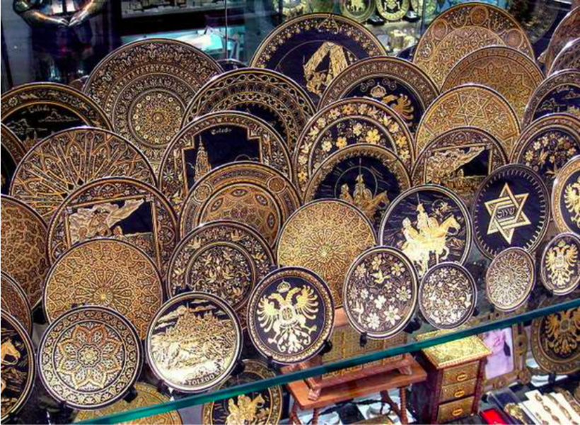Первая и главная вещь, которую туристы везут из Толедо, — знаменитая толедская сталь. Ковать прочные клинки местные жители начали несколько тысячелетий назад, так что это одно из древнейших ремесел, сохранившихся по сей день. В специализированных магазинах вы найдете широкий выбор оружия, выкованного местными мастерами: от крошечных клинков до мечей и сабель, как восточных, так и европейских.