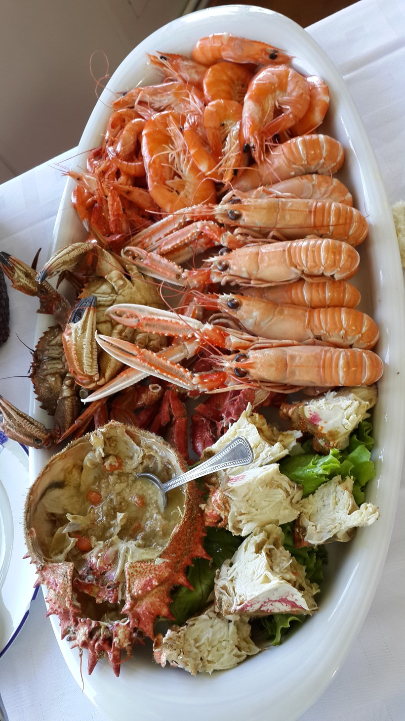 Вне конкуренции блюдо из различных морепродуктов — Mariscada! Цена зависит от вашего выбора морепродуктов, большое блюдо на 2 человек из лангустов, кальмаров, креветок и краба может доходить до 100 EUR и выше. Например, вот такое блюдо на двоих, вместе с бутылкой вина, хлебом и кофе с десертом, плюс сюда входит ещё какой-нибудь салат или закуска на ваш выбор.