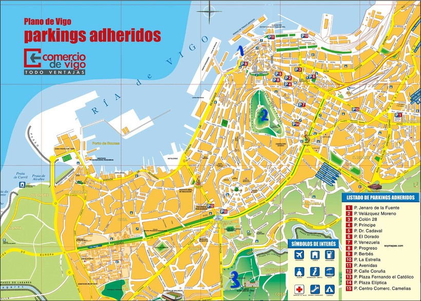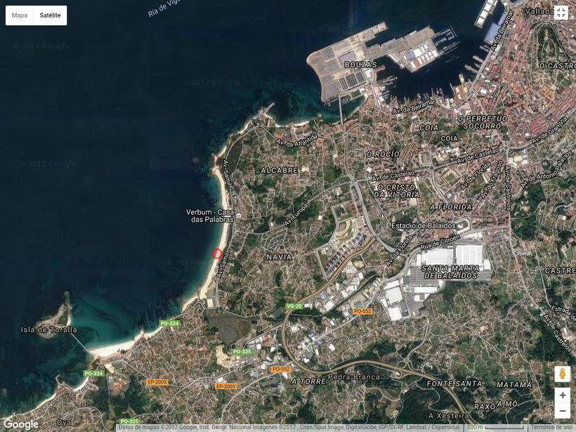 К сожалению, не существует в природе карты всех пляжей, иначе я бы ее здесь обязательно разместила. На карте внизу можно увидеть 2 главных пляжа — Самиль, там где Av.Samil, и западнее, напротив острова Isla de Toralla, пляж Vao.