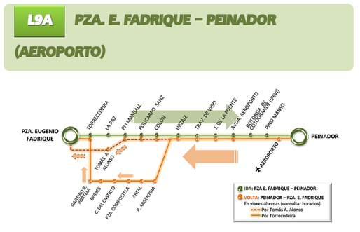 Если останавливаться в отеле в центре города, выходить надо на 4 остановке, Урсайз/Urzaiz. Для того чтобы вернуться в аэропорт, достаточно будет просто перейти дорогу и на другой стороне будет остановка автобуса. Линия, которая связывает аэропорт с городом – L9A. Билет стоит 1,32 EUR.Расписание и маршруты движения городских автобусов можно увидеть на автобусных остановках .О направлении движения автобусов с автобусной станции Виго вы можете узнать здесь.