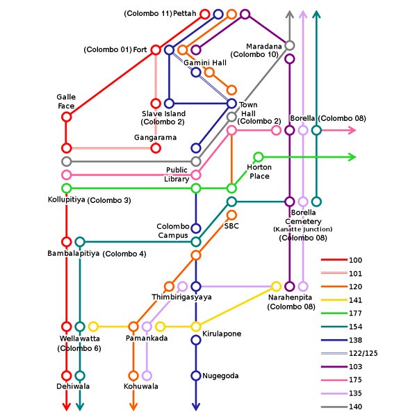 В Коломбо развита сеть городских автобусов. Причем курсируют как государственные (SLTB), так и частные. По стоимости проезда практически нет отличий, возможно, частные – более новые и комфортные. Дешевле транспорта в Коломбо не найти – за 0,15 USD (20 LKR) можно проехать весь город.