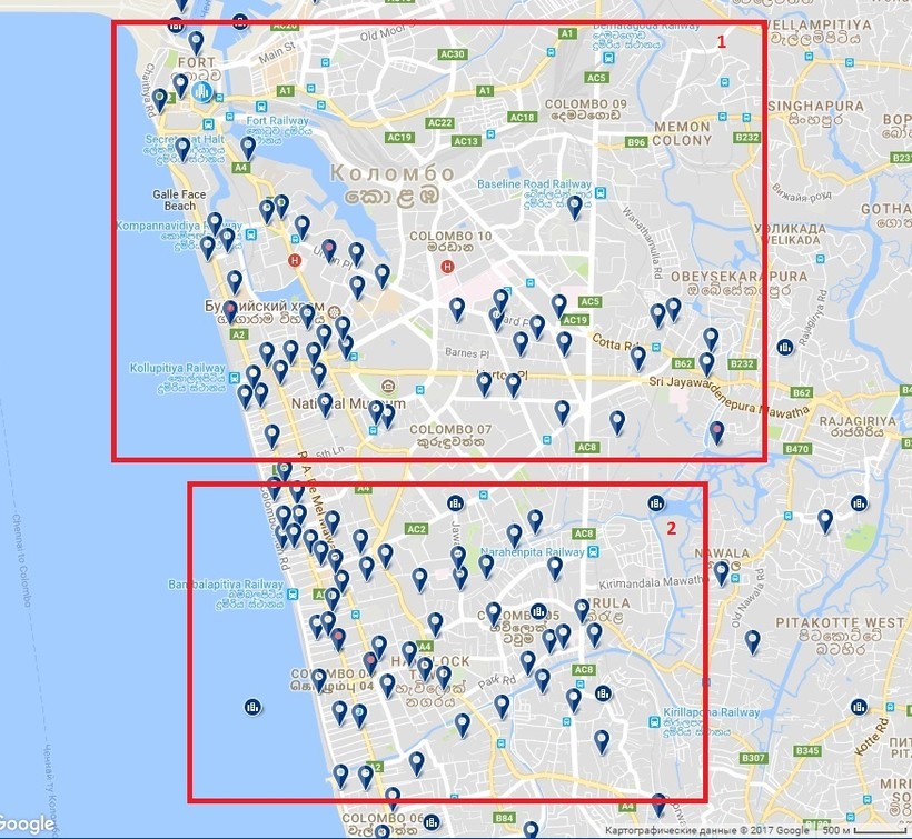 Хочу отметить 2 зоны в Коломбо, интересные с точки зрения проживания. В остальных районах находятся дома местных жителей. Хоть гостиницы и встречаются, но добираться оттуда до основных достопримечательностей очень хлопотно.