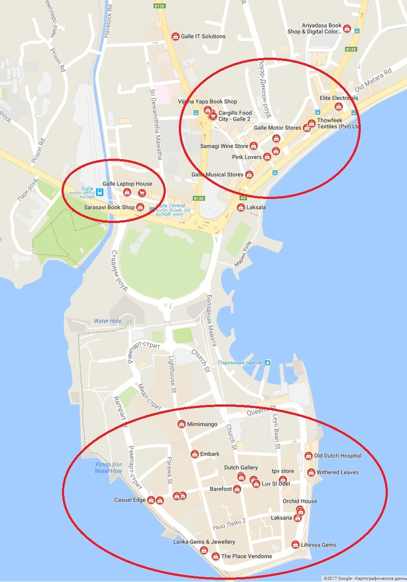 - 14.30 — Идем по основным магазинам и рынкам — сначала в старой части Галле, затем возвращаемся в новую часть, где на закате ужинаем в ресторане с видом на Галле и океан. Для подъема к ресторану уже понадобиться тук-тук.
