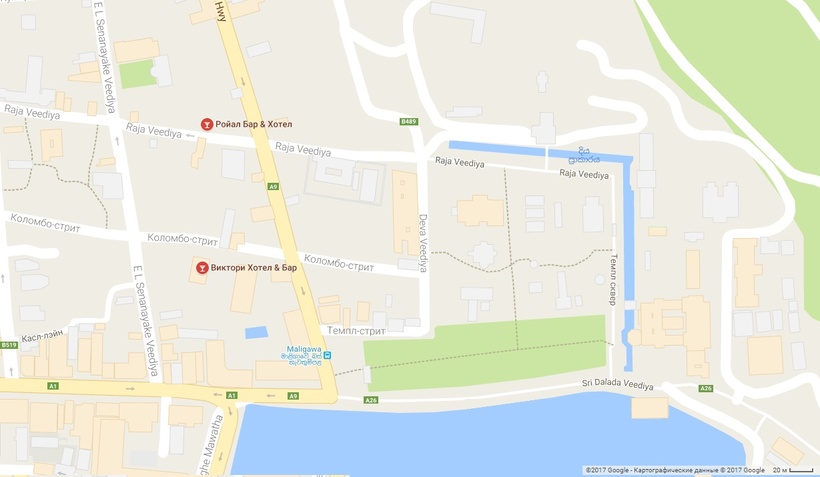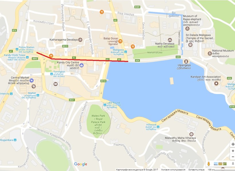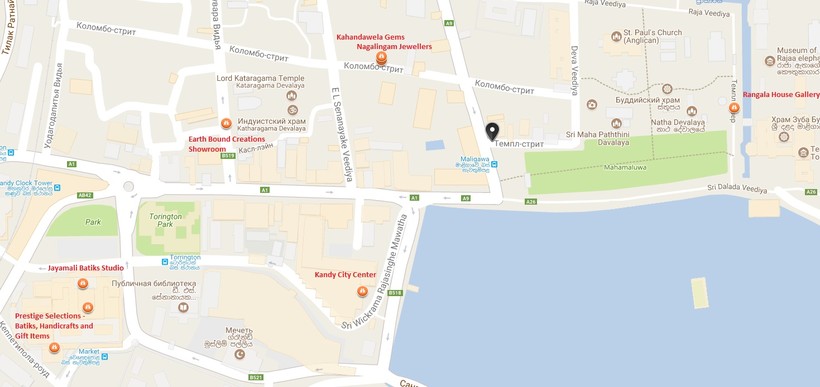 Автобус останавливается в близости от рынка и торгового центра Kandy City Center. До Храма Зуба Будды около 10-15 минут пешком. Если не любите лишнюю суету, то возьмите тук-тук за 1 USD (150 LKR).