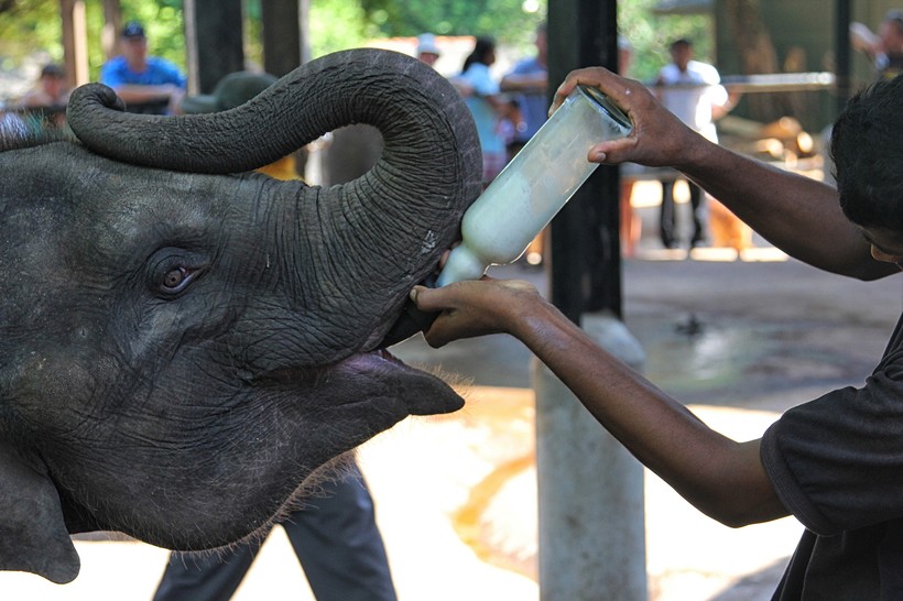 - кормление слоненка из бутылочки — 2,3 USD (350 LKR);