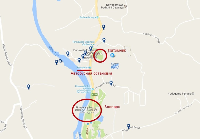 По приезде либо на автобусную станцию, либо на вокзал тук-тукеры будут настойчиво предлагать вам посетить именно это место, которое находится на 2 км южнее питомника Пиннавелы. Аргументы неплохие: цена ниже — 14 USD (2 000 LKR), в которые включено катание на слонах в течение 15 минут. НО это заведение — предмет настоящего мошенничества и легкой наживы за счет бедных пожилых слонов!