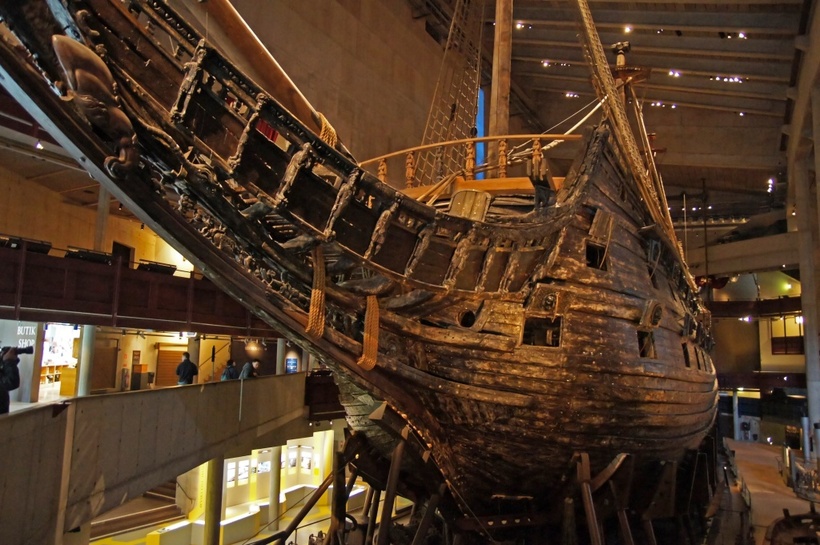 - Корабль «Густав Васа» – боевой корабль, который затонул в 17 веке при первой же попытке эксплуатации. Он был поднят со дна, законсервирован и отреставрирован, и используется в качестве экспоната, как сохранившийся первый парусный корабль. Если убрать мои личные сравнения с Кон-Тики в Осло, то вполне впечатляет и вдохновляет!