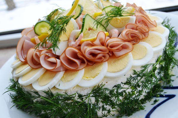- Смёргосторта – скандинавы еще те любители бутербродов, ибо это сытно, вкусно и просто. В Смёргосторта чего только нет: и свекла, и сливочный сыр, и горошек, и бекон, и огурцы...В общем, блюдо выходит вкусным и сытным, несмотря на то,что выглядит, как закуска.