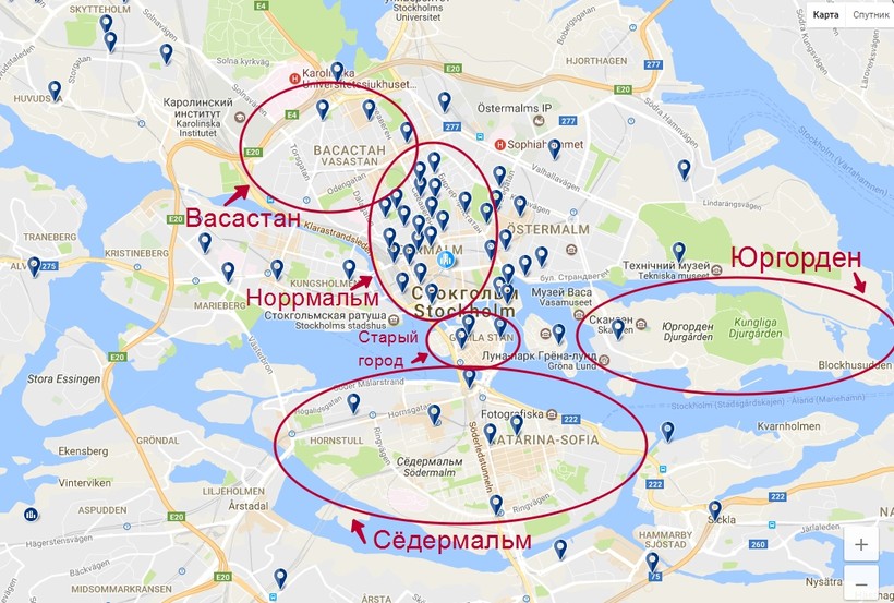 Стокгольм — большой город со множеством районов и кварталов, однако не все из них являются туристическими. Я предлагаю вашему вниманию пять основных, которые наиболее популярны среди путешественников.